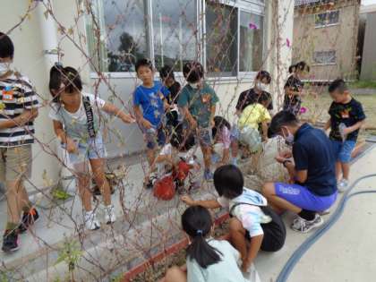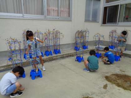 1年生です。今週の生活科では、あさがおの種取りをしました。