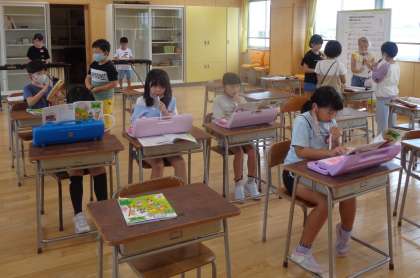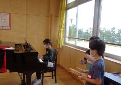3年生は、音楽の時間に「ゆかいな木きん」の合奏をしています。同じ楽器のグループに分かれ何度も練習しています。今日は伴奏に合わせて合奏しました。初めてでしたが上手に合奏できました。