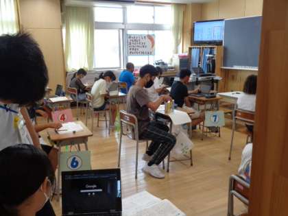 6年生は国語。熟語の成り立ちをクロムブックも使いながら学習しています。