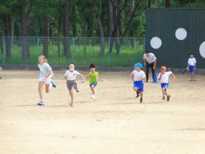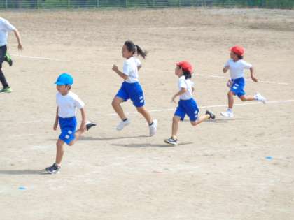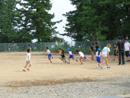 のびのびタイムは走力アップです。記録更新を目指して何回も走っていました。先生たちも一緒に走っています。