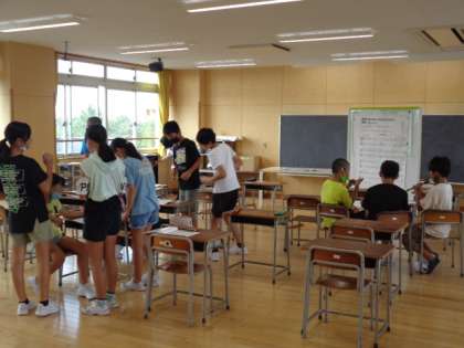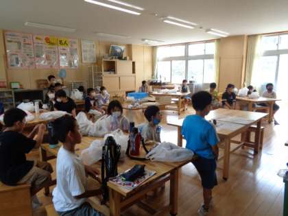4年生は図工。「ギコギコトントンクリエーター」の作品完成が近づいています。