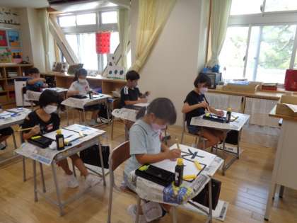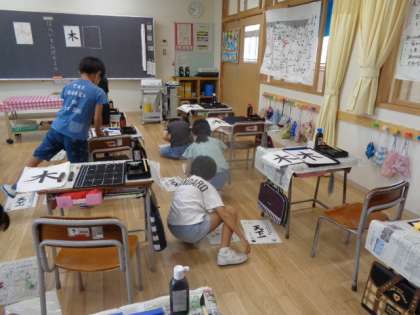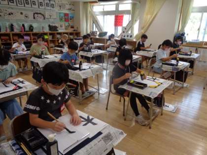 3年生は習字の学習も慣れてきました。今日は右と左のはらいを練習しました。右はらいの最後が難しく、何度も練習しました。