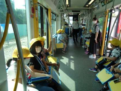 いよいよ今日は社会見学でした。フィーダーバスに乗り、市内電車に乗り換えスーパーマーケットに行ってきました。店内では商品の並べ方や置く場所などの工夫、その他たくさんのひみつを見つけてきました。学校に帰ってきて、聞いてきたことをカードにまとめました。