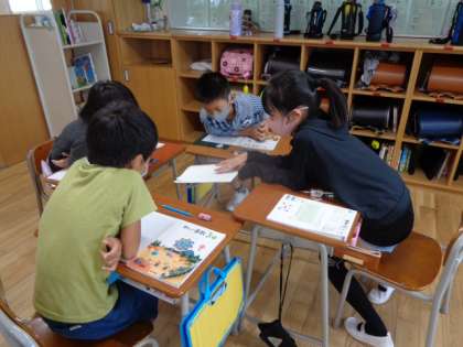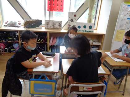 3年生の今日の算数は、2けたの数に1けたの数をかける計算を学習しました。計算のしかたを個別に考え、友達の考えと比べながらグループでたしかめあいました。位ごとに計算すれば、九九を使って答えをもとめられることが分かりました。