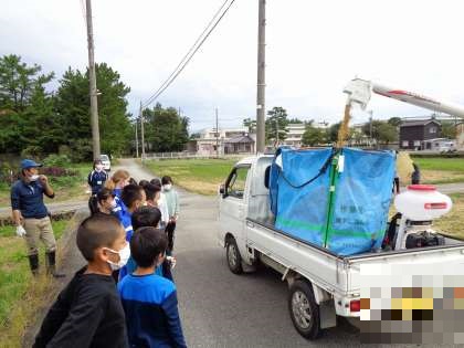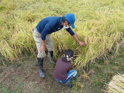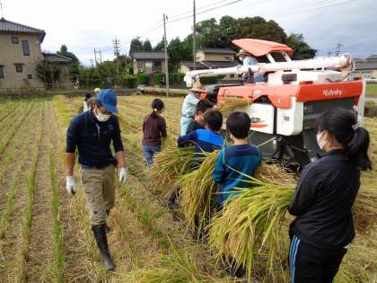 今日は1学期に田んぼに植えた稲の稲刈りをしました。子供たちは「腰が痛い!」「大変!」と収穫の苦労を体感しながらも、楽しんで活動に取り組んでいました。