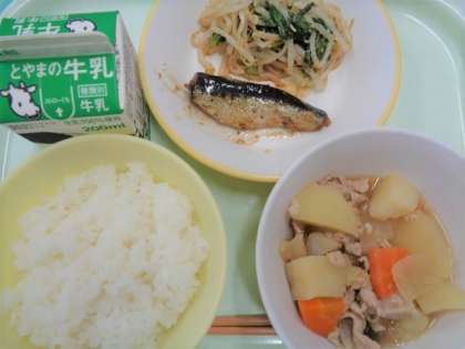 じゃがいもがやわらかくてほっかほかでした。ごま和え、いわしとともに三角食べで、うまみが口の中いっぱいに広がります。