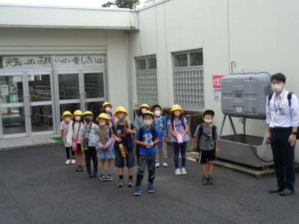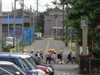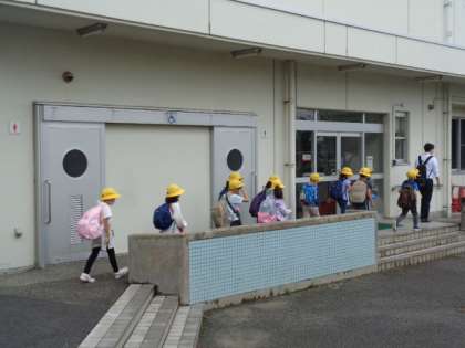 玄関前に並んで元気に大きな声で挨拶をしました。フィーダーバス、富山港線を乗り継ぎ、富山市立図書館へと向かいます。