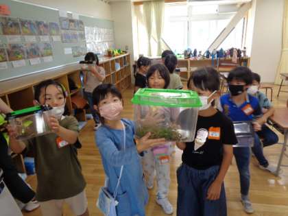 1年生は3限目に近くの公園で捕まえてきた虫を観察していました。