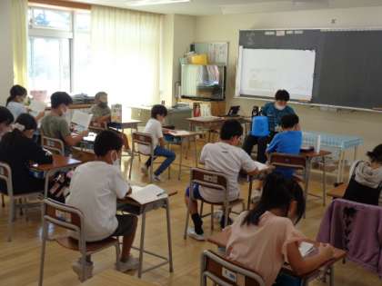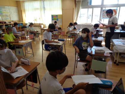 6年生は来週の宿泊学習のしおりを読んでいました。