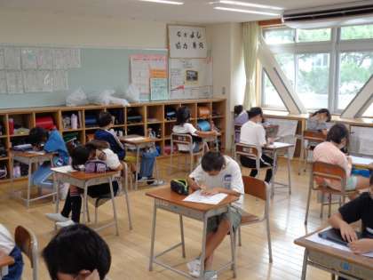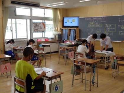 6年生は算数。四角柱の体積を求める計算に挑戦していました。