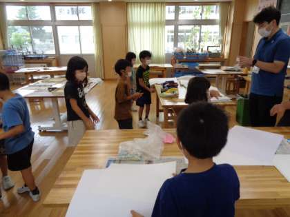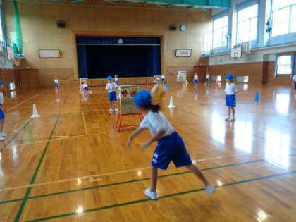 1年生は体育。的に向かってボールを力いっぱい投げていました。
