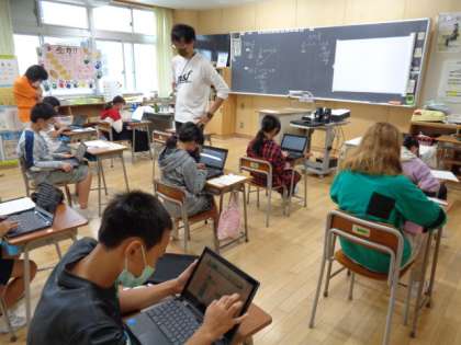6年生は家庭。家庭科サポーターの皆さんのおかげで、ほぼ完成です。