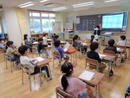 1年生は「くじらぐも」の台本を前にわくわく感いっぱいです。