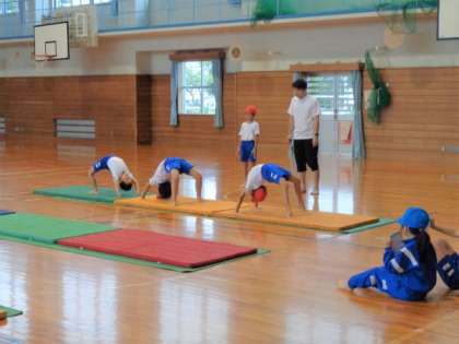 2年生は体育。ブリッジを順番に披露しています。