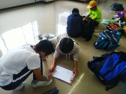 10月6日(木) 6年 宿泊学習 館内ビンゴオリエンテーリング 公開日 2022/10/06 更新日 2022/10/06 6年生 まずは、砺波青少年自然の家を歩き回るオリエンテーリングです。 地図を見てポストを見つけ、そこに書いてある字や数を集めながらゴールを目指します。 なかなか全部見つからないそうですが、なんと1班と3班が制限時間内に全部見つけました。はまっ子の秘められた能力かもしれません。全部見つけたときは、走ってはいけない廊下を思わず駆け出してしまいました。みんな元気です。