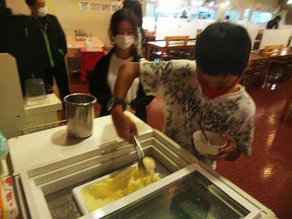食後のアイスです。一人一回です。表にメニューが照会してありました。
