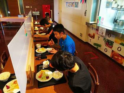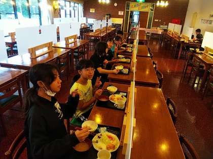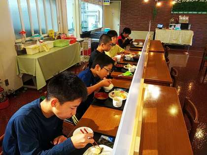 しっかり眠ることができた人が多いせいか、元気に食堂に集合。食欲もあるようです。今日も元気に活動できそうです。