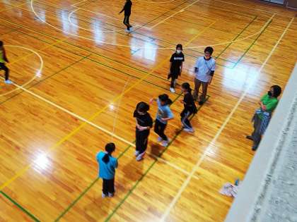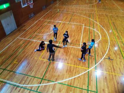 朝食を食べたあとは、体育館を借りて朝活動をしました。みんな思い思いに身体を動かしました。みんな元気です。