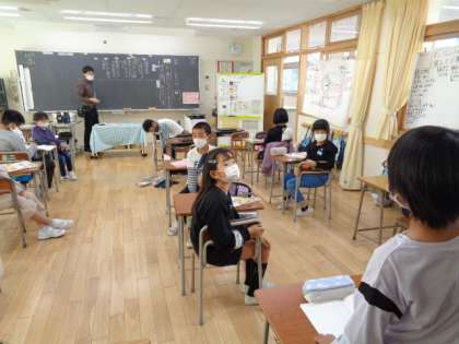 4年生は国語。ごんぎつねのシーン「いわし事件」について許せるか、自分の考えを発表しています。