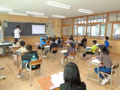 5年生は算数。日本にやってくる外国人の数を算数的に分析しています。