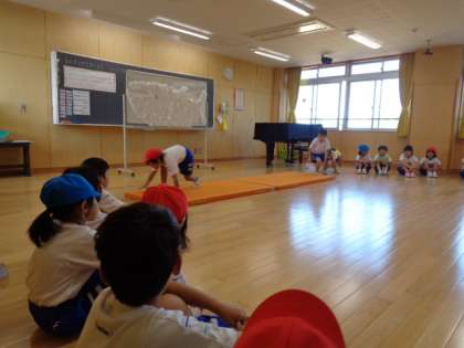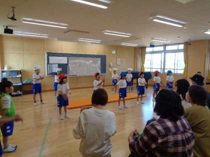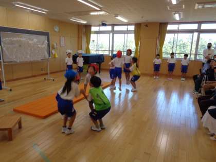 セリフでつなぐ劇です。子供たちは大きな声で元気よく物語をつないでいきました。途中、体育のマット運動で練習した様々な技を披露したり、みんなで歌を歌ったり、笑顔いっぱいの発表となりました。最後まで見ていただき、あたたかい拍手を送ってくださった皆様、本当にありがとうございました。