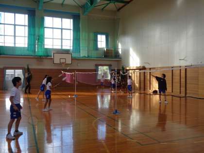 バトミントンクラブ、テーブルゲームクラブ、合奏・ハンドベルクラブの様子です。