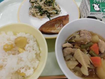 栗がとても甘くておいしいおこわでした。4年生の男の子は「魚の(おかず)がナンバー1だった!」と言っていました。