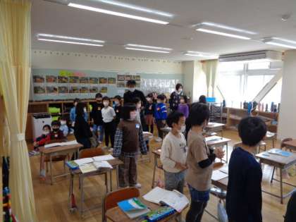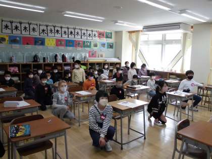 今日、2時間目の授業中不審者対応の避難訓練を行いました。子供たちは放送をよく聞き、火災とは違う避難に落ち着いて取り組んでいました。
