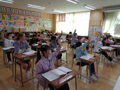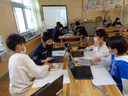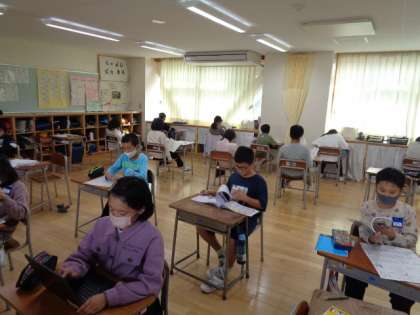 4年生はプリント学習をしたり、クロムブックなどで各自学習したりしていました。