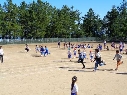 晴れてとてもきれいな青空の下、10月の記録会を行いました。前月よりどれだけタイムは縮まったでしょうか。タイムをとる先生も真剣です。