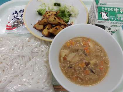 甘塩っぱい大学芋が食べ応えもありとてもおいしかったです。久しぶりのソフト麺をみんな喜んでいたみたいです。