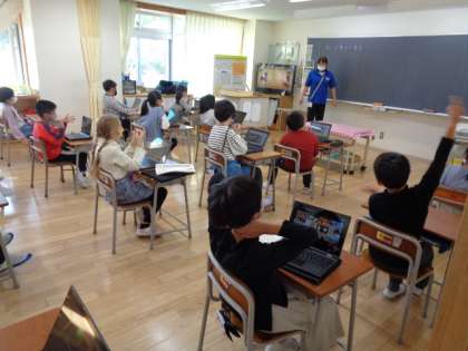 3年生は国語。「カードをつくろう」で参考となる画像をインターネットで調べています。