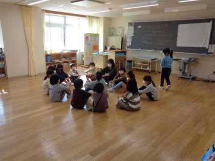 1年生はキラキラタイムにハンカチ落としなどで楽しんでいました。
