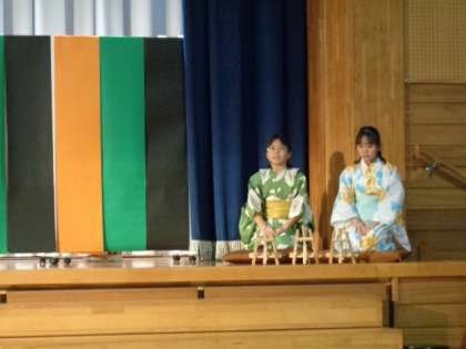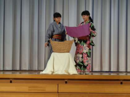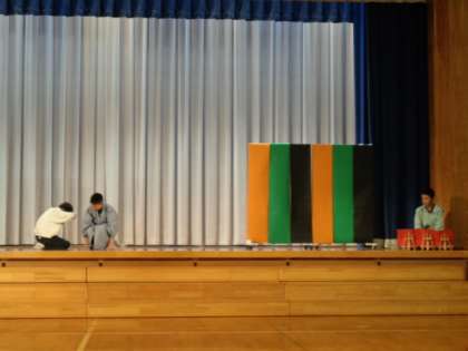 6年生は19日(土)に行う学びの発表会に向けて練習に励んでいます。いくつかの落語を題材にした劇です。校長から「間を大切にして、ゆっくりはっきり大きな声」を心がけるようにアドバイスがありました。子供たちは真剣なまなざしで聞いていました。