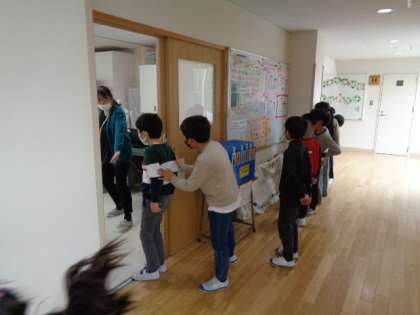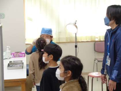 全校児童一人一人の歯科検診を行いました。緊張した様子で順番を待つ子供たちです。