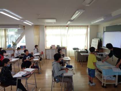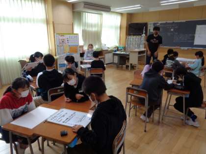 4年生は算数。四角形の特徴の学習で、垂直に着目しています。