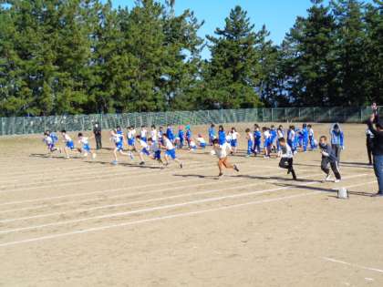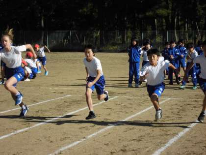今日の昼休み(わくわくタイム)からキラキラタイムにかけて、50m走記録会を行いました。青空が広がり鳶が上空から見守る中、みんな真剣にゴールまで全力で走り、少しでもタイムを縮めようとがんばっていました。