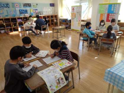 2年生は生活科。おもちゃランドの計画について話し合っています。
