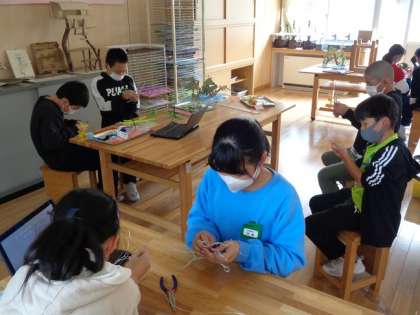 5年生は図工。「立ち上がれワイヤーアート」がだんだん立ち上がってきました。