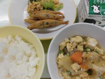 納豆和えにはたくあんも入っていて歯ごたえがありました。納豆はそのままごはんにかけて食べることが多いですが、和え物もおいしかったです。