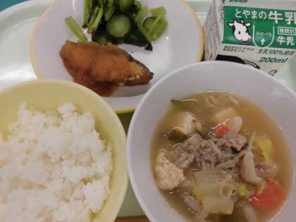 今日は、富山県の郷土料理や特産品を取り入れた「きときとランチ」の日でした。今日の目玉は「とろろ昆布和え」です。なじみ深い昆布の和え物で、昆布のおいしさを感じました。