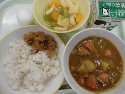 カレーライスがとてもおいしかったです。献立表を見る子供たちの様子や昼休みの会話から、みんながカレーライスに力をもらっていることがよく分かります。