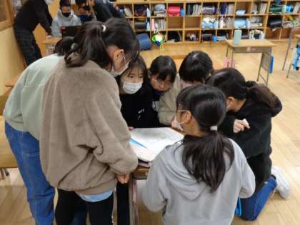 6年生は卒業文集づくり。話し合いにも熱が入ります。