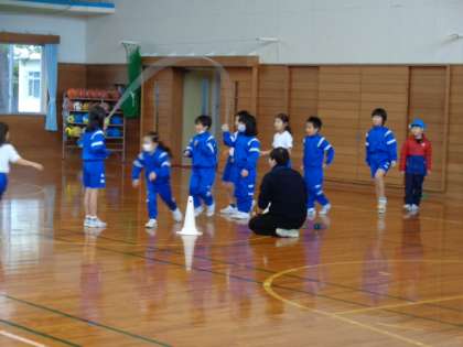 2年生は体育。8の字跳びの練習です。反省をくり返しています。