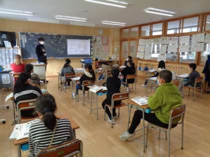 5年生は社会。放送局がニュース番組をどうつくるか考えています。