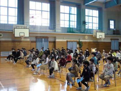 校長は、2学期を振り返って、たくさん行事があり、いろいろな世界で活躍している人が、努力を続けることの大切さをみんなに教えてくれたこと。みんなも今年1年を振り返りがんばったことを思い出してみてほしいこと。学校に来てくださった多くの方が、浜黒崎の子供たちを褒めてくださっていたことを話しました。子供たちも静かに思い出しながら、ときには手を挙げて、しっかりお話を聞いていました。