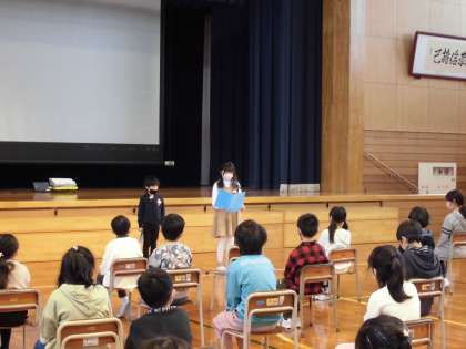 1・3年生は、学習や運動について、仲間と協力したり自分で努力したりしてできるようになったことを自信をもって発表しました。