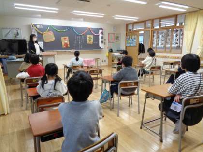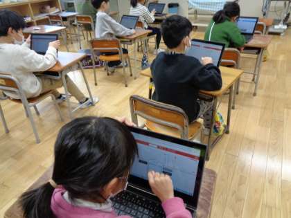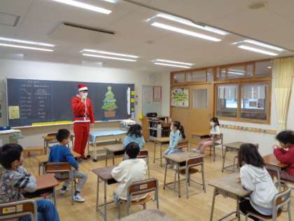 終業式後の学活の様子です。それぞれの教室で、終業式のお話の内容についてふり返ったり、「あゆみ」を待つ間、クロムブックで学習していたりして過ごしました。子供たちがつくった飾り付けやサンタクロースが現れたクラスもあり、笑顔いっぱいの教室でした。