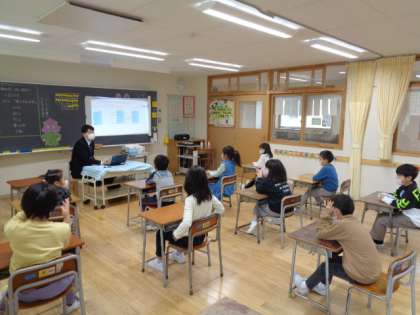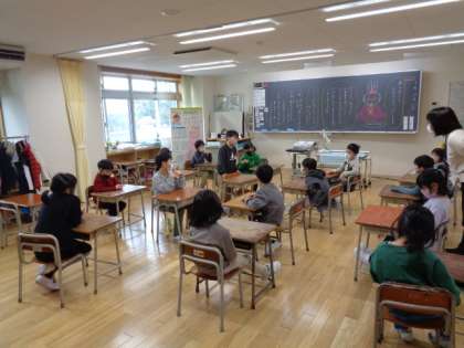 1年生、2年生、3年生は、冬休みのことや3学期に頑張りたいことなどについて、発表したり、書いたりしていました。係活動の役割を決める話し合いもしていました。