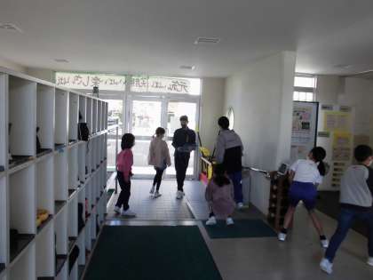 縦割り班のみんなで、校内に隠された小さなカードを見つけ、そこに書かれた文字を使ってできる文章を答えます。全部で14こ探すのですが、なかなか簡単には見つかりません。見つけて仲間と喜びを爆発させる班、目で合図しあってこっそり笑みを交わす班といろいろでしたが、みんなとても楽しそうに活動していました。